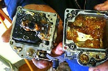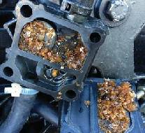 Carburetor reservoirs left sitting for even short periods of time are even more susceptible and a stuck float or clogged jets is usually the result.
